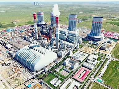 内蒙古国电电力上海庙发电公司4×1000MW燃煤机组钢结构间冷塔全部完工